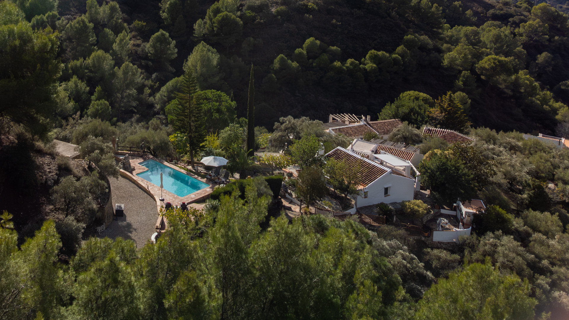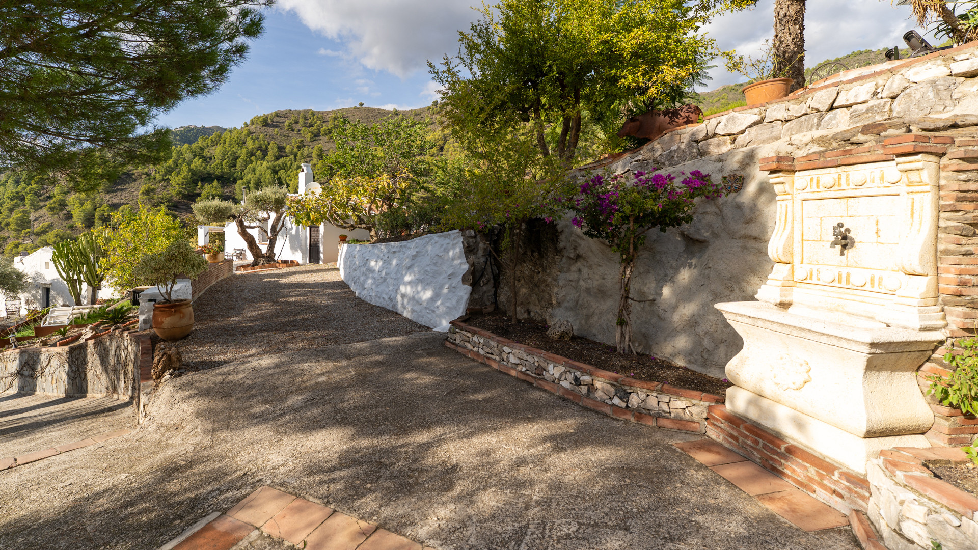 Slechts op een paar kilometer afstand van Frigiliana neemt u de afslag naar het buurtschap El Acebuchal: u nadert nu het natuurpark van de Sierra de Tejada en Almijara. Dan, een schitterende groene vallei. Hier ligt, in een bosrijke omgeving, gedomineerd door rust en stilte, Cortijo Ricardo. Uw eigen kleine privé paradijs, Andalusischer kan het niet!