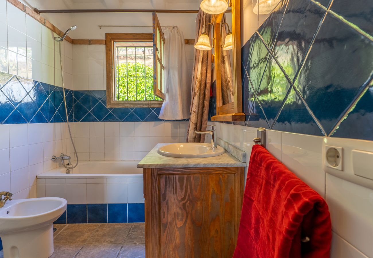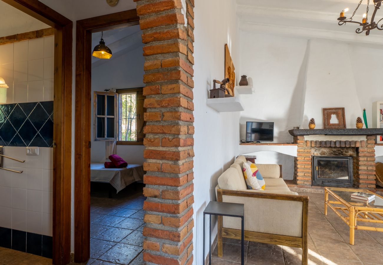 Het huisje is ingericht in de typisch rustieke stijl van Andalusië met blauw/witte tinten. Het is praktisch ingedeeld met een knusse open zitkamer met aangrenzend de eethoek en de keuken. Het woongedeelte is voorzien van een bankstel voor 4 personen, een houtkachel en satelliettelevisie met dvd-speler. De keuken is functioneel ingericht met een 4-persoons eettafel, een keramische kookplaat, een koelkast/vriezer, magnetron, een vaatwasser, een kleine elektrische oven en alle gebruikelijke keukenbenodigdheden. De wasmachine staat in de bijkeuken. U vindt in dit intieme cortijo twee slaapkamers: een kamer met een tweepersoonsbed en een kamer met twee aparte bedden. De gezamenlijke doucheruimte is voorzien van een wastafel en toilet.