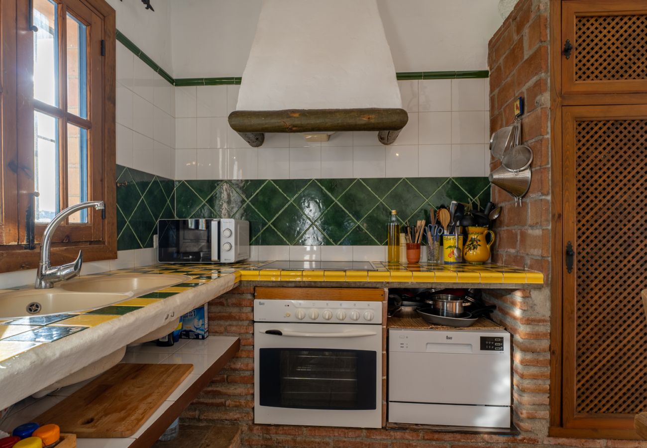 In het huisje is een rustige en romantische atmosfeer gecreëerd door middel van een authentieke Andalusische inrichting met elementen als balkenplafonds, traditionele stenen, ambachtelijke handgemaakte tegels en de wit met okergekleurde muren. De zitkamer is samen met de eethoek en de keuken tot één geheel gemaakt. U vindt er twee banken, een houtkachel, een radio/cassette/cd-speler en satelliettelevisie. De volledig uitgeruste keuken heeft een 4-pits keramische kookplaat, een elektrische oven, koelkast/vriezer, magnetron en een wasmachine. Er zijn 2 slaapkamers: een kamer met een tweepersoonsbed en een kamer met twee aparte bedden. Beide kamers hebben de originele okerkleurige plafonds die mooi contrasteren met de witte muren. De gedeelde badkamer bevindt zich tussen de twee slaapkamers en heeft een douche boven het bad, een wastafel en een toilet.