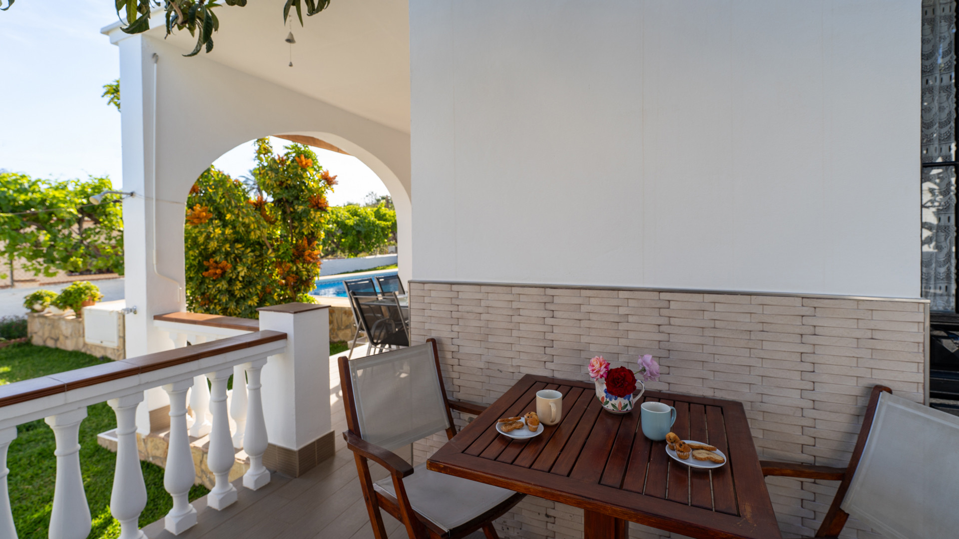 Lovely homely villa with fruit trees in the garden and lovely pool. Grassed garden area ideal for sunbathing. Separate BBQ area with covered outdoor kitchen area. Owners family came to sort out the Wi-Fi and the TV stations for us and were very friendly. Villa is gated which makes you feel secure also there is a free safe which is very handy. Only one concern was the barking dogs in the surrounding area. But this would not stop us visiting again.