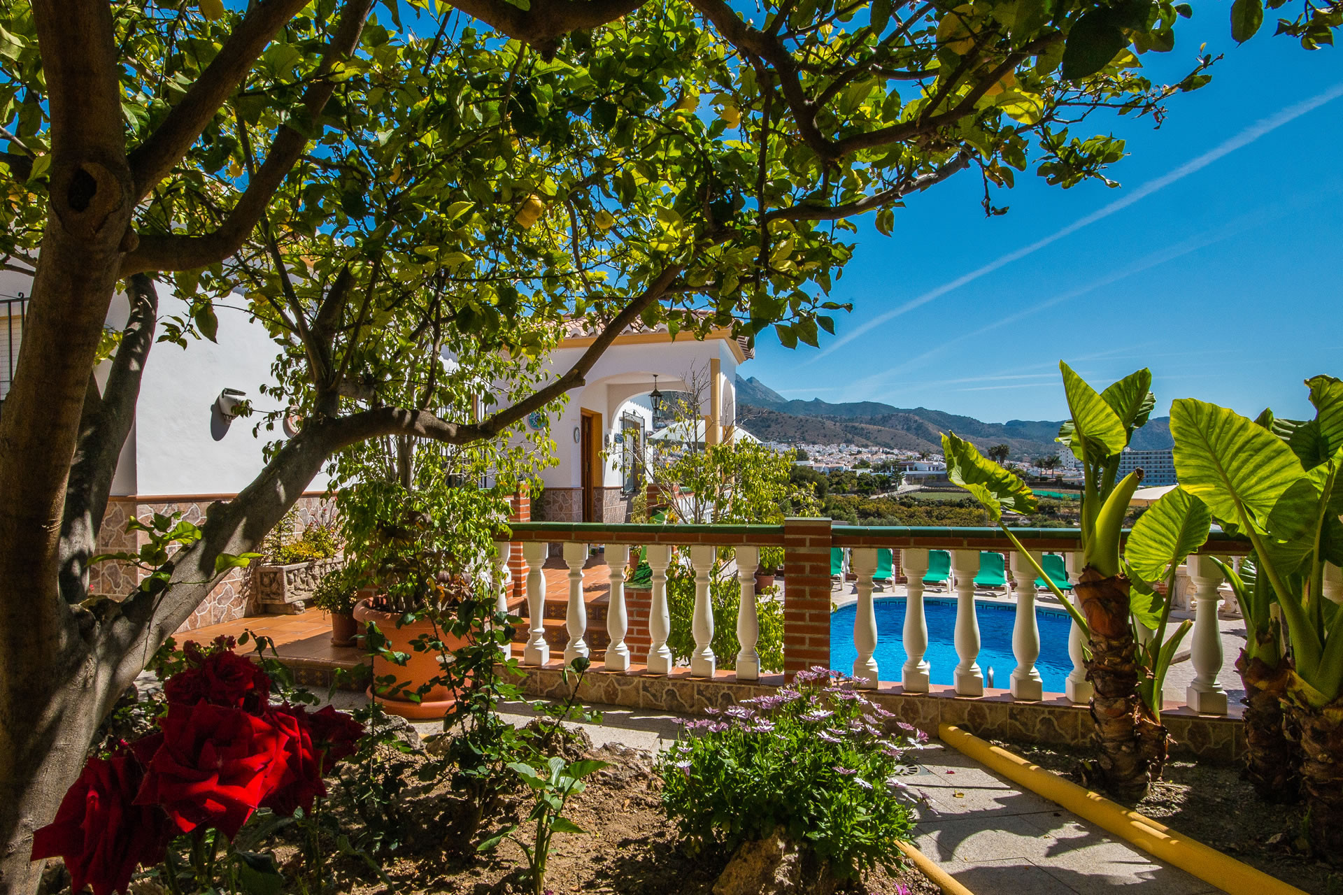 De villa heeft aan de voorkant een mooie veranda vanwaar u uitkijkt over Nerja en de Middellandse Zee- een ideale plek om te genieten van uw ontbijt of diner. Een paar traptreden naar beneden leiden naar het zonneterras en het privé zwembad met ligstoelen. Aangrenzend aan het huis vindt u een verrukkelijke tuin met veel bloemen, planten, citrusbomen en een ruimte om te barbecueën. Voor uitstapjes raden wij u aan om de omgeving te voet te verkennen: dit is een paradijs voor wandelaars- goed beschreven in de plaatselijk verkrijgbare gids "Twelve Walks Around Nerja". Per auto zijn de charmante witte dorpen van de Axarquia en historisch Granada goed bereikbaar en een bezoek meer dan waard. De villa beschikt over parkeerruimte voor één auto.