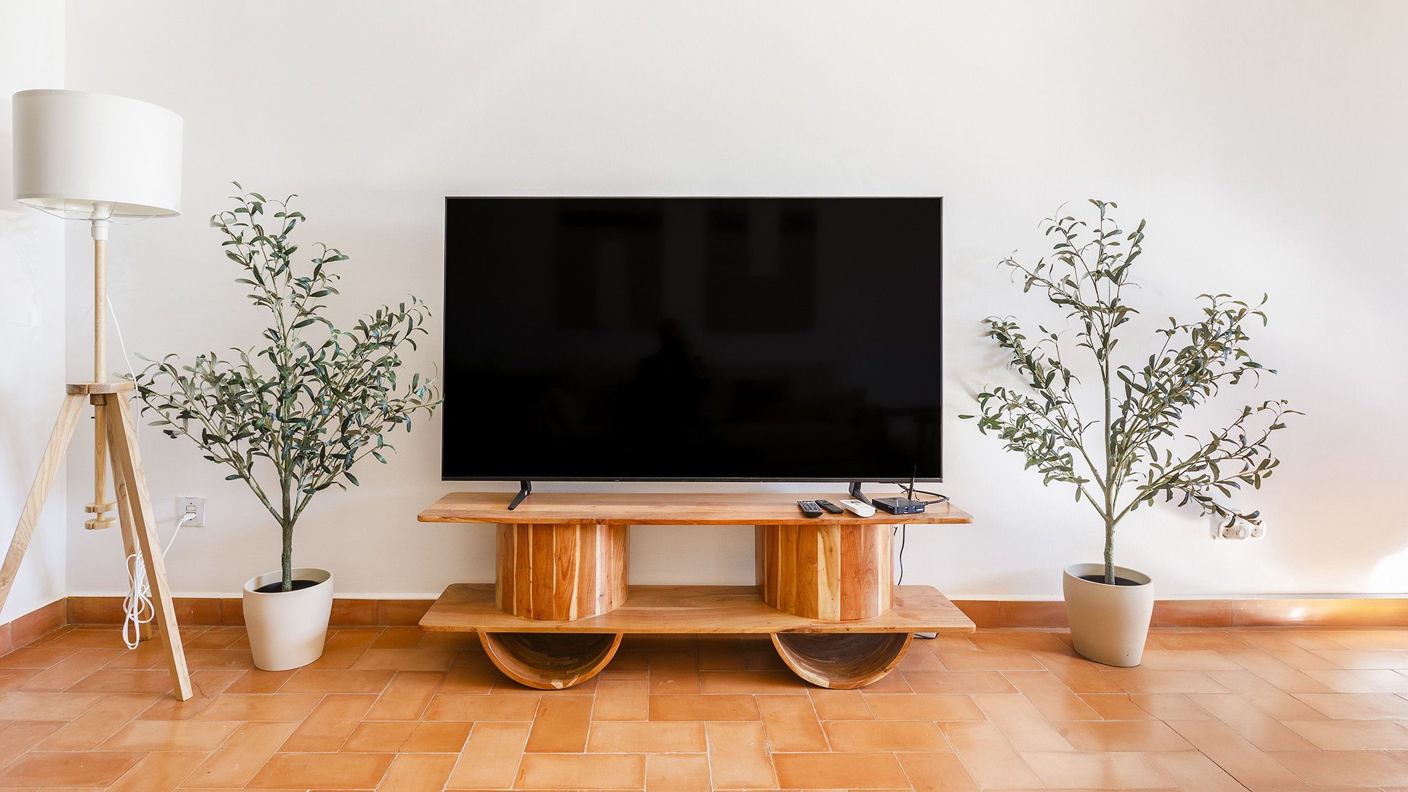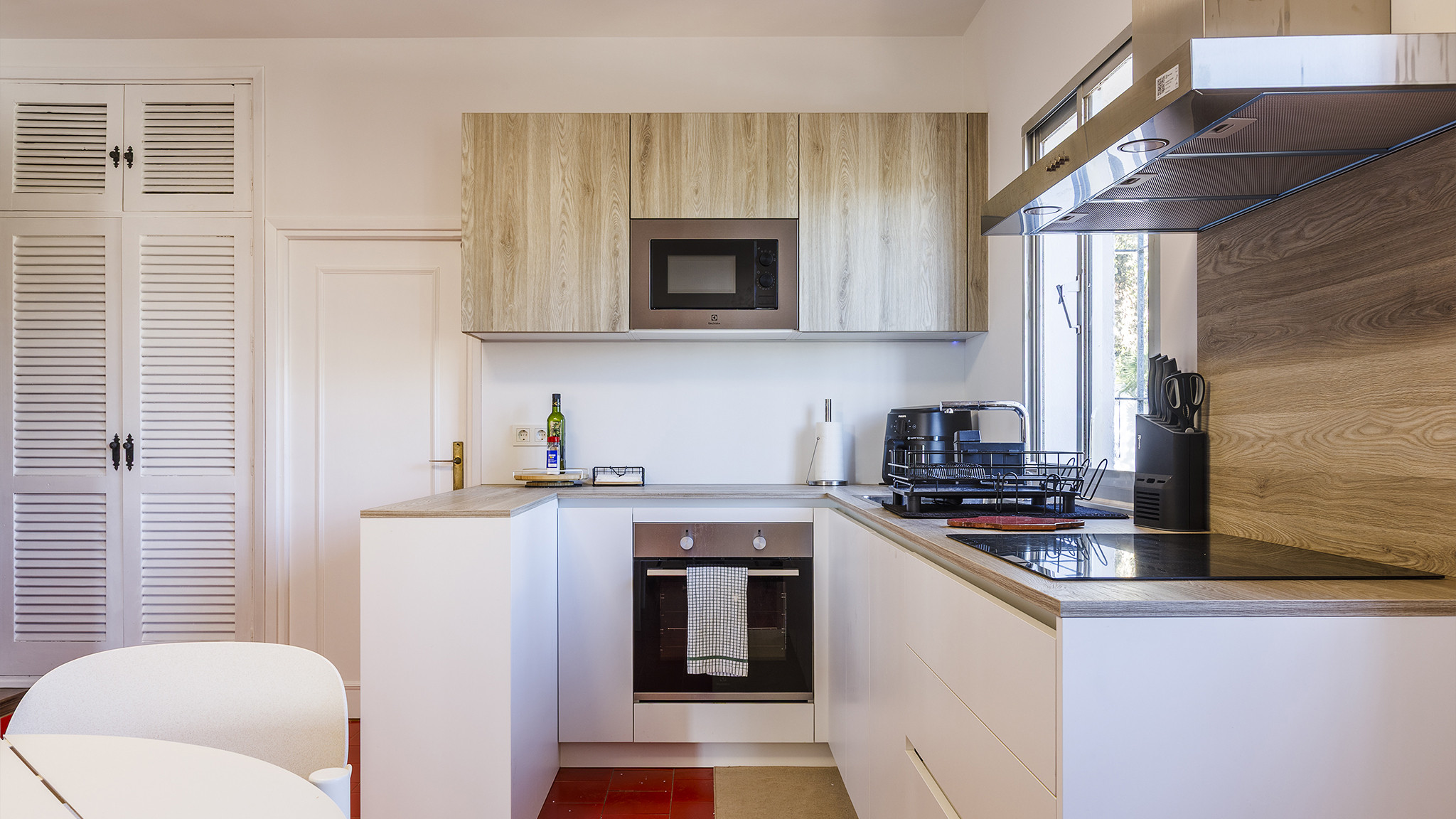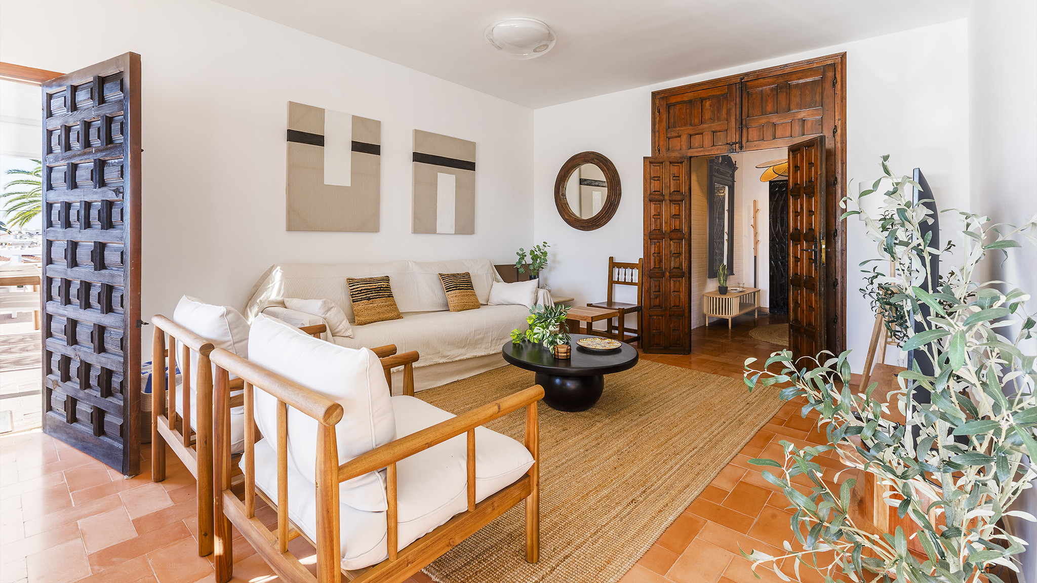 Binnen is de villa comfortabel ingericht. De woonkamer beschikt over gezellige banken en stoelen, een eethoek en een smart-tv met internationale kanalen. De onafhankelijke, volledig uitgeruste keuken biedt alles wat nodig is voor een ontspannen vakantie.