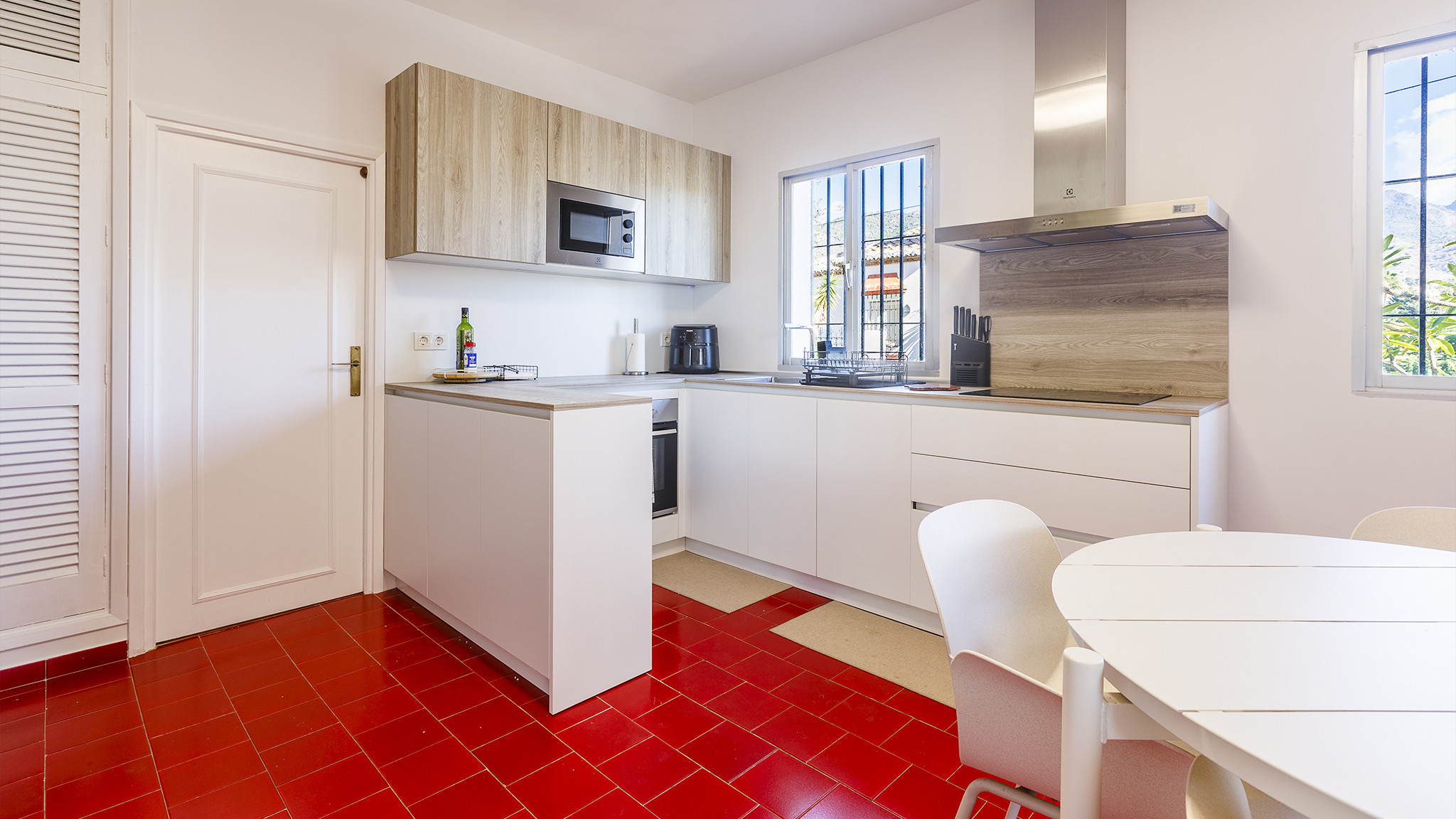 De omgeving van Exotica houdt het midden tussen stad en buitengebied, het beste van twee werelden! Vanaf het zwembad kijkt u uit over het landschap beneden met avocado, olijf-en citrusbomen. Naar het zuiden toe ligt Nerja met op de achtergrond de Middellandse Zee. Alles bij elkaar genomen is dit een zeer gunstige accommodatie: 5 minuten rijden van het centrum van Nerja (2,2 kilometer) en de stranden. Wilt u de auto thuislaten? Op 800 meter lopen vindt u de supermarkt (Lidl) en het restaurant van hotel Almazara ligt op een loopafstand van 1,2 kilometer. De toegang naar de villa loopt via het gazon, de ingang bevindt zich op de eerste verdieping. Het zwembad (7 meter lang, 3 meter breed; 1,40 tot 1,80 meter diep) op begane grondniveau en is omringd door een groot terras met zon èn schaduw. Ligstoelen, tuinmeubilair en barbecue staan voor u klaar. Het overdekte terras met panoramische uitzichten op de eerste verdieping is een absoluut perfecte plek om buiten te eten!
