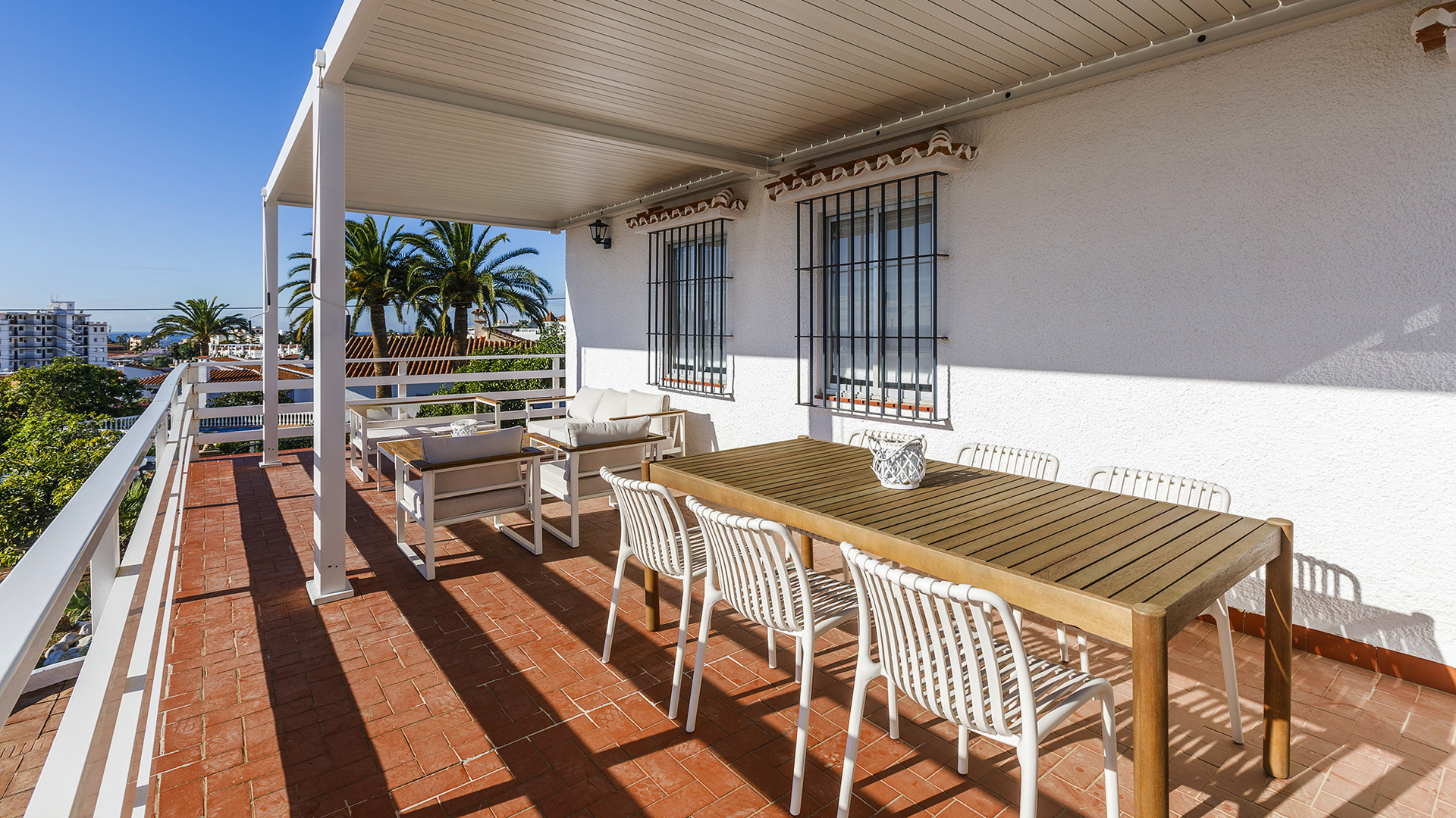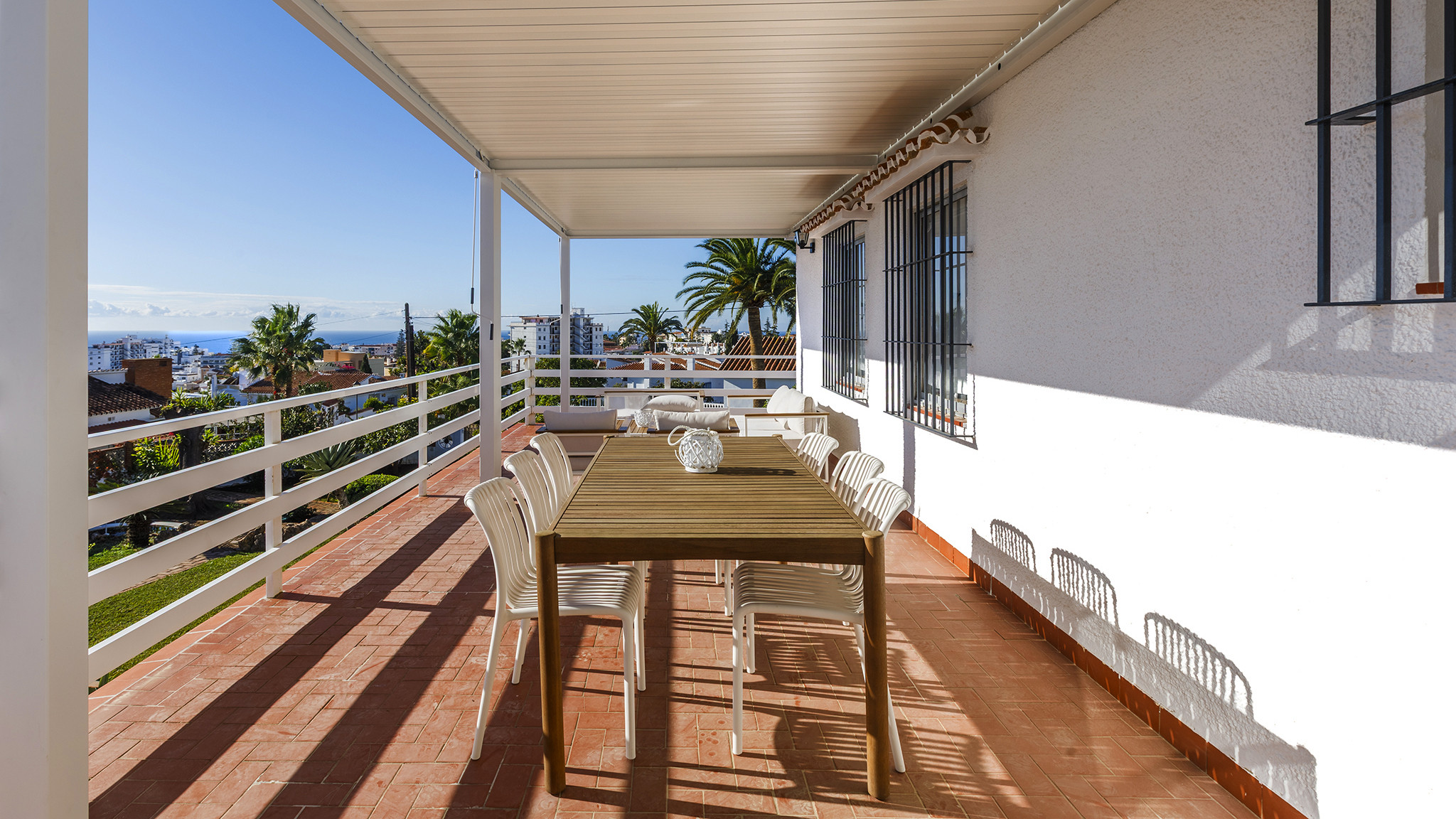 Als u op zoek bent naar een villa in de buurt van zowel strand als stad dan is dit misschien de juiste keuze voor u: deze comfortabele villa ligt in de wijk Exotica, 5 minuten rijden van het centrum van Nerja en het strand. Een goed verzorgde en ruime accommodatie, een uitstekende optie voor grotere gezinnen of een vriendengroep. Vanaf een heerlijk overdekt terras op de eerste verdieping kijkt u op het zwembad, met verderop een weids uitzicht over het omringende landschap en de bergen, en wat verder naar beneden op de kustlijn.
